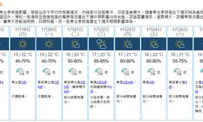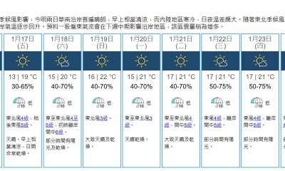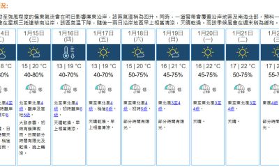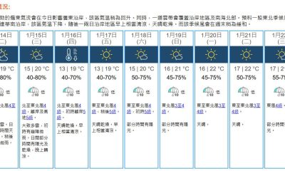 受乾燥的東北季候風影響,華南沿岸明日(18日)早上仍...
