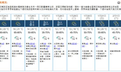 天文台表示,預料一道冷鋒會在下周日(26日)橫過華南...