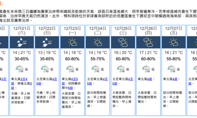 【19:00】受東北季候風影響,廣東地區晴朗及非常乾...