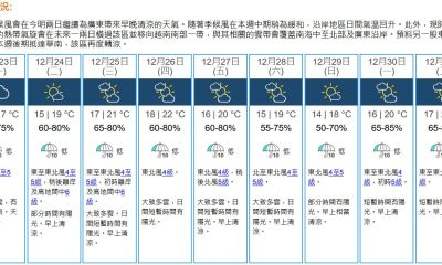 下周踏入聖誕佳節,天文台今(17日)表示,預計聖誕期...