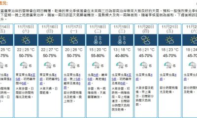 天文台表示,本港周三(12日)大致多雲,初時有一兩陣...