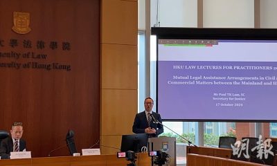 律政司長林定國在港大法律學院一個講座表示,香港在一國...