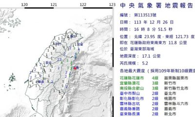 據中央氣象署資訊,今午(26日)4時8分左右,花蓮地...