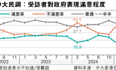 【明報專訊】中大香港亞太研究所發表政府最新民望,43...