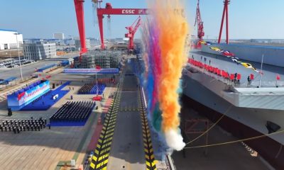 中國自主研製建造的076兩棲攻擊艦首艦下水命名儀式1...