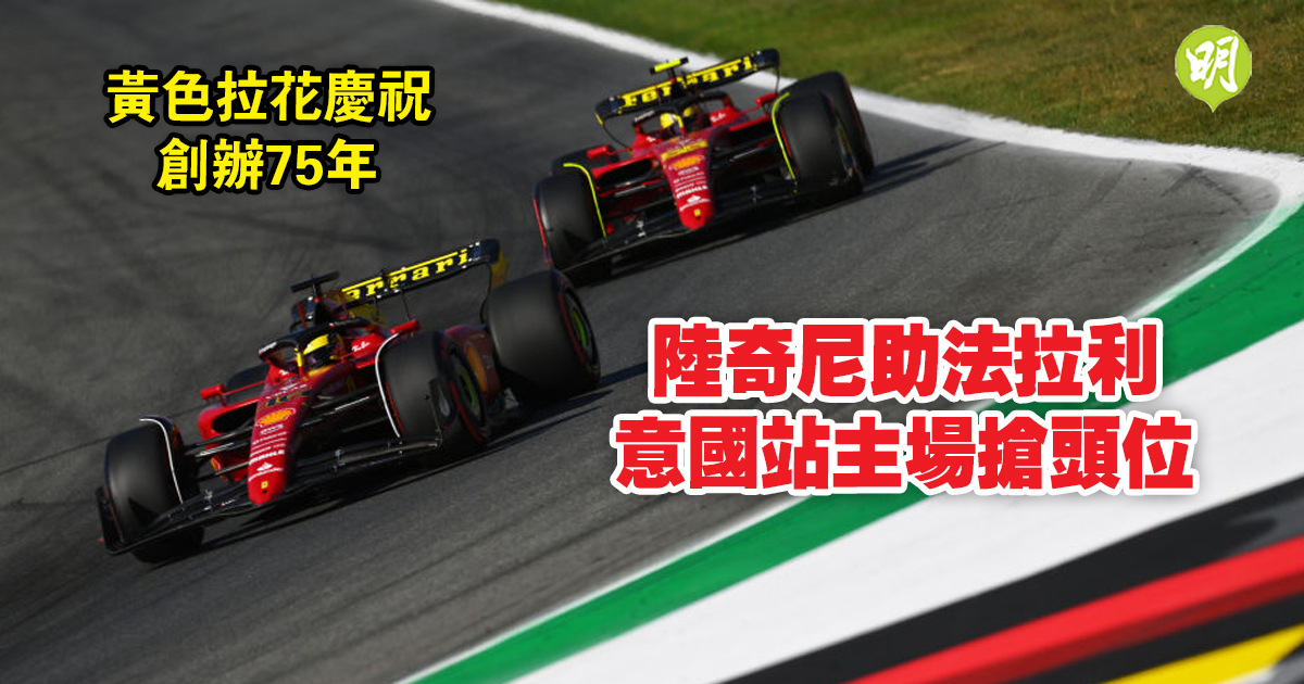 世界一級方程式(F1)今晚上演意大利站正賽,主場出賽的法拉利,適逢創立75周年,換上加上黃色的新戰車「拉花」出賽,陣中車手陸奇尼昨(10日)在排位賽力壓總成績領先的紅牛勁敵韋斯塔本,今將排頭位出戰。