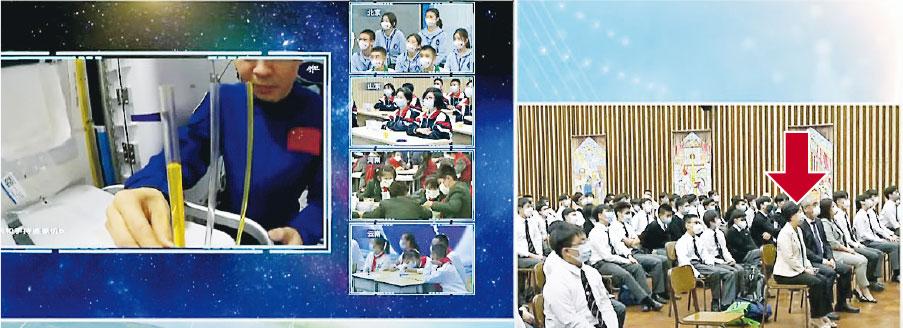中國 天宮課堂第三課 京港多地齊直播 發佈於 3 年 前 2022 年 10 月 13 日 By 明報 【明報專訊】「天宮課堂」第三課昨日(12日)下午4時許開始,約50分鐘的授課中,神舟十四號太空人陳冬、劉洋、蔡旭哲展示了太空站問天實驗艙工作生活場景,演示微重力環境下毛細效應實驗、水球變「懶」實驗、太空趣味飲水、會調頭的扳手(士巴拿)等現象,並講解實驗背後的科學原理。此外,太空人還重點介紹了在太空站開展的水稻和擬南芥種植研究情況,展示了手套箱剪株操作。 相關文章:天宮課堂太空實驗神舟十四號 Up Next 習新書論治黨:民主不集中勢成散沙 披露10年論述 指少數服從多數為引導民主而非壓制 不要錯過 粵北氣溫跌破10℃ 史上同期最低 繼續閱讀 贊助商 猜你喜歡 模擬月壤磚完成太空實驗 狀態良 神舟21今載3人攜4鼠飛天 神十四「行李」交付研究 3太空人抵京隔離恢復期 首餐吃粥麵茄牛 120天太空種水稻 種子到種子國際首次 神舟十四成功着陸 冬夜嚴寒首次 駐太空逾半年重返地球 3太空人身體狀態佳 神舟十四號3太空人抵北京 進入隔離恢復期 (16:54)