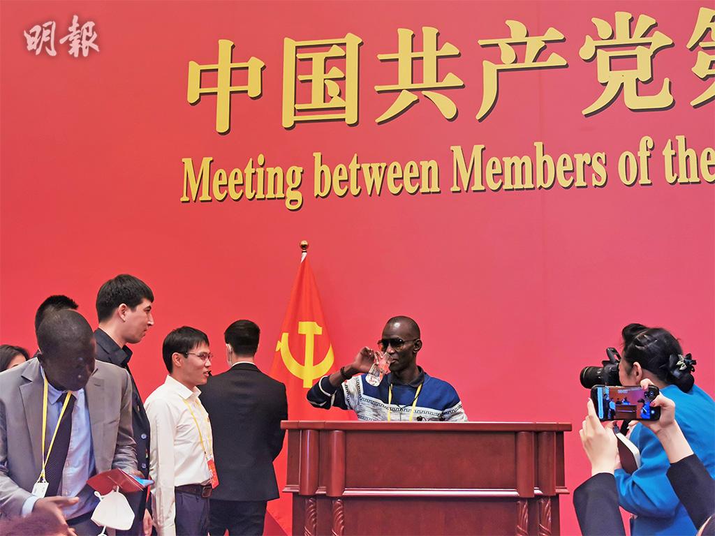 即時兩岸 中共二十大|新政治局常委記者會現場花絮【圖輯】 (17:50) 發佈於 3 年 前 2022 年 10 月 23 日 By 明報 中共第二十屆中央委員會中央政治局常委今日(23日)中午12時許,於北京人民大會堂金色大廳與中外傳媒見面,在場記者紛紛領取新領導人簡歷。連任中央委員會總書記的習近平在講話期間不時喝水潤喉,在記者會結束後,有記者走到講台上拿起水杯,做出喝水姿勢。(明報記者林迎、王佩凡) 相關文章:中共二十大二十大編輯推介 Up Next 台灣國防部長邱國正:中共中央軍委年輕化 看得出有所準備 (16:10) 不要錯過 中共二十大|中共第二十屆中央委員會及中紀委經選舉產生 (11:44) 繼續閱讀 贊助商 猜你喜歡 成都天橋懸布條籲改革 27歲男子被刑拘 青海省委書記:「六幹部喝死一人」是痛處 絕不輕放 政治局常委會:完善黨全面領導 中國評論:今年不開三中全會? /文:孫嘉業 美聯社:鍾南山曾上書習近平促撤清零 習近平與越共總書記阮富仲互致新春賀信 (17:04)