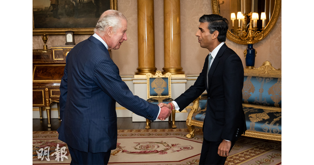 【18:41】英王查理斯三世接見辛偉誠,任命他為英國首相,並與他握手。
