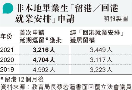 教育 非本地畢業生 申延期留港跌三成 發佈於 3 年 前 2022 年 11 月 17 日 By 明報 【明報專訊】今屆政府強調「搶人才」。《施政報告》提出放寬「非本地畢業生留港/回港就業安排」(下稱安排)的逗留期限,由一年延長到兩年,以吸引留港發展。教育局長蔡若蓮昨日書面回覆立法會議員陳仲尼,稱去年約3200人透過「安排」提出首次延期逗留申請獲批,較2019年近5000人獲批下跌約36%,對比前年(約4700人)則跌約32%。 相關文章: Up Next 「心繫家國」官校活動 教局稱部分超額報名 不要錯過 Story : Weekend Joyride 繼續閱讀 贊助商 猜你喜歡