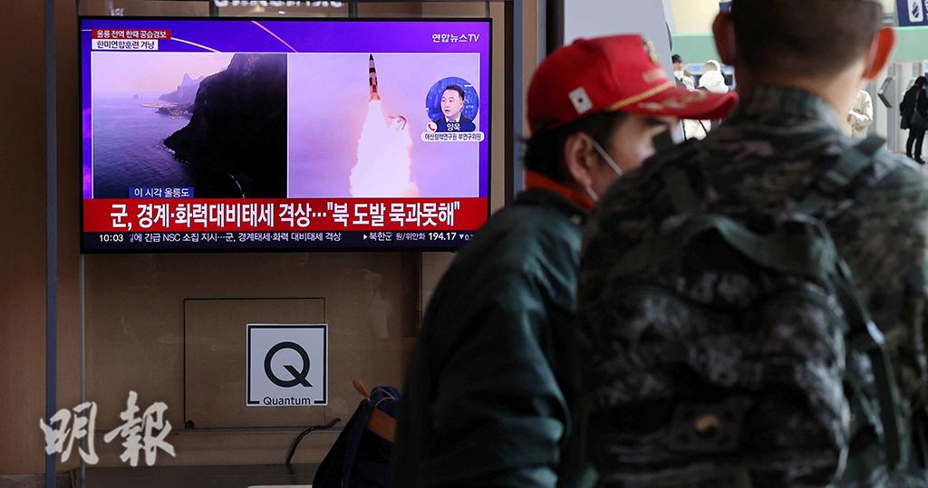 【11:17】韓國聯合參謀本部表示,朝鮮今早所射的其中一枚導彈落在北方界線以南約26公里,距離韓國東部海岸城市束草市僅57公里,亦距離鬱陵島約167公里。