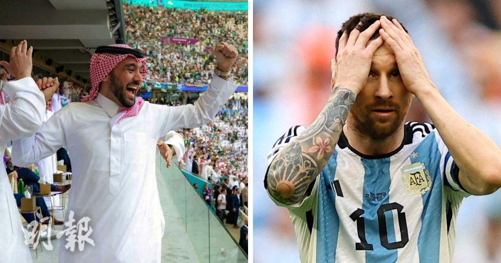 世界盃C組周二(22日)一場賽事爆出大冷門,阿根廷隊以1:2不敵沙特阿拉伯隊。沙特球迷歡喜若狂,舉國慶祝國家隊擊敗強隊阿根廷。沙特國王薩勒曼宣布全國周三(23日)放假一天。王儲穆罕默德亦有看球賽,看見國家隊獲勝即興奮與親友擁抱。反觀阿根廷球迷傷心失望,一言不發,隊長美斯亦難掩失落之情。