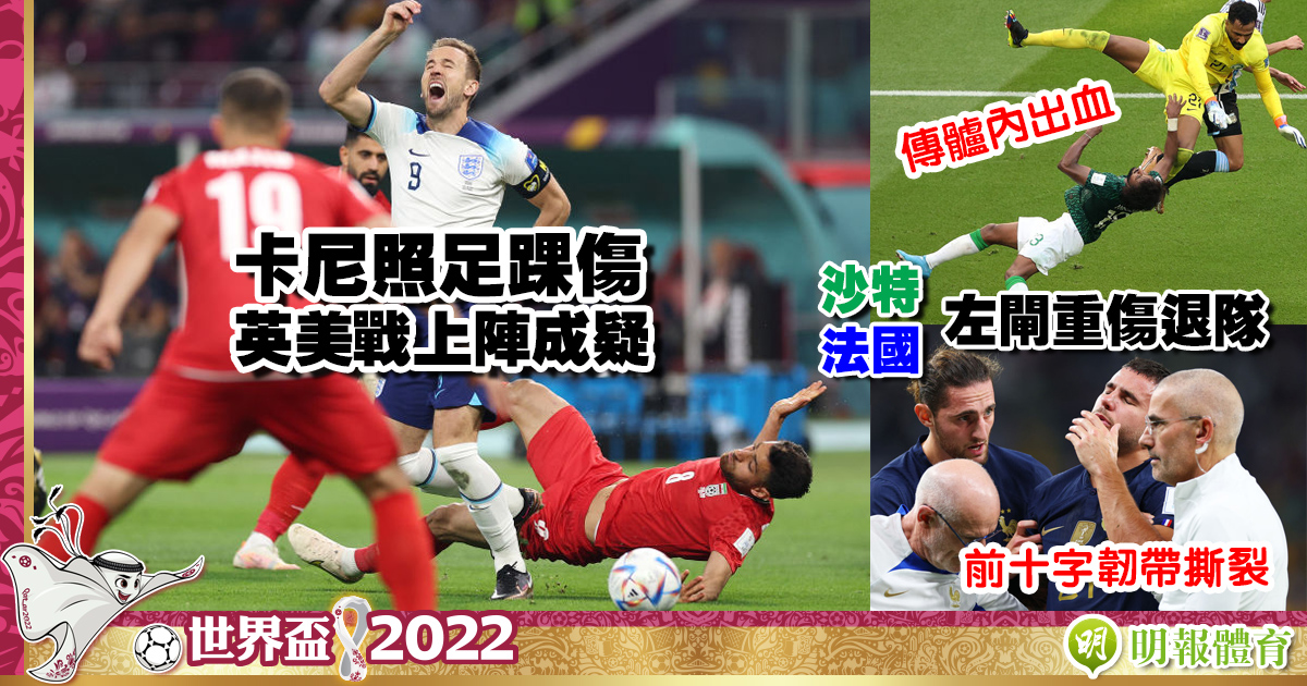 英格蘭隊後日便會轉戰美國隊,但隊長哈利卡尼賽前需要檢查足踝傷勢,令外界關注期缺陣時間。今晨(23日)比賽傷出的法國隊守將盧卡斯靴南迪斯則證實要退隊,令法軍只餘24人作戰。至於沙特阿拉伯隊左後衛艾沙拉尼據報昨晚賽後頭臚出血,需飛往德國接受緊急手術。