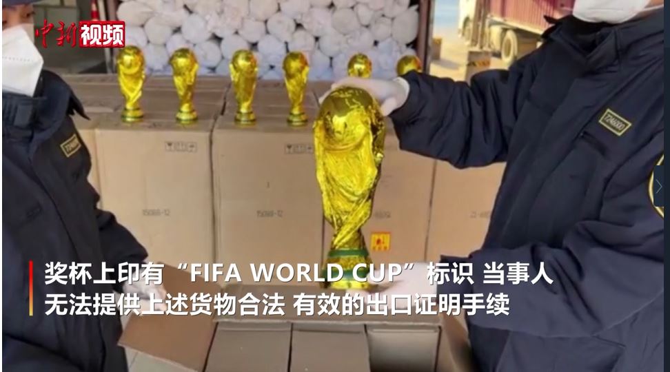 即時兩岸 南寧海關查獲假大力神盃492個【短片】 (18:46) 發佈於 3 年 前 2022 年 12 月 19 日 By 明報 廣西南寧海關近日查驗出口雜貨時,發現夾藏未申報獎盃41箱,共計492個。獎盃印有「FIFA WORLD CUP」標識,當事人無法提供有關貨物合法有效的出口證明手續,涉嫌侵犯權利人在海關總署備案的商標專用權。經國際足協(FIFA)確認,該批貨物為侵權貨物。該批貨物已移交相關部門處置。 (中新網) 相關文章:世界盃2022假大力神盃 Up Next 中澳建交50年 澳外長黃英賢明日訪華 (15:45) 不要錯過 工信部長肖亞慶被開除黨籍 降職辦理退休 (17:33) 繼續閱讀 贊助商 猜你喜歡 友賽|阿根廷世盃封王後首擊 美斯寫入球里程碑領銜挫巴拿馬 (17:52) 足球|隊長洛里斯退出法國隊 告別14年國際賽生涯 (14:38) 足球|迪甘斯續約法國隊至2026年 勢成隊史首教頭領軍四戰世盃 (20:11) 足球︱美斯新年賀詞向家人溫馨致意 「若無法與家人分享,一切都一文不值」 (17:12) 法甲|尼馬「插水」領紅無阻PSG險勝 麥巴比12碼絕殺談阿根廷展風度 (18:03) 永明的天空:人人世一
