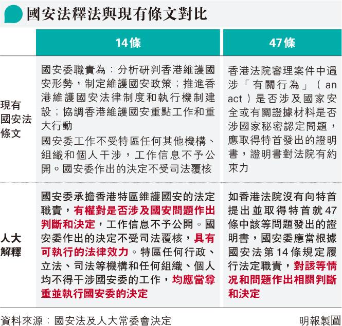 港聞 學者:釋法後國安委擴權至高無上 梁愛詩:特首已表明釋法無賦新權 發佈於 3 年 前 2023 年 1 月 2 日 By 明報 【明報專訊】全國人大常委會首次就《港區國安法》釋法,當中首次表明由特首擔任主席的維護國家安全委員會(國安委)的決定「具可執行的法律效力」,行政、立法、司法三權「均應當尊重並執行」。研究內地法的澳洲悉尼大學法學院教授凌兵向本報稱,人大解釋明確甚至擴大國安委的職權,令國安委在本地國家安全領域變成至高無上機構,「等於行政、立法、司法都要遵守」,若無釐清權力是否限制,恐對制度衝擊或法治影響大。 相關文章:國安委國安法釋法梁愛詩 Up Next 黃照達稱反修例研究遭報警 浸大否認 黃:觸發辭教席移英 校方:一直護學術自由 不要錯過 智慧監獄洗手間裝CCTV 懲教:如廁位置打格 繼續閱讀 贊助商 猜你喜歡 政府:劉賜蕙屬國安委秘書處執行長 授勳揭劉賜蕙任國安委執行長 政府確認屬國安委秘書處其中一員 (15:56) 遭美制裁9護國安官員獲授勳 李家超讚無畏無懼履職 劉賜蕙任國安委執行長 梁稱公署詢問有權緘默 「若要你答,當然要答」 梁愛詩:趁無事修訂,免如2019被「趁機搞大」 梁愛詩呼籲讓違法青年重投社會 施榮懷冀社會接納更新青年信中央樂見 (17:20)