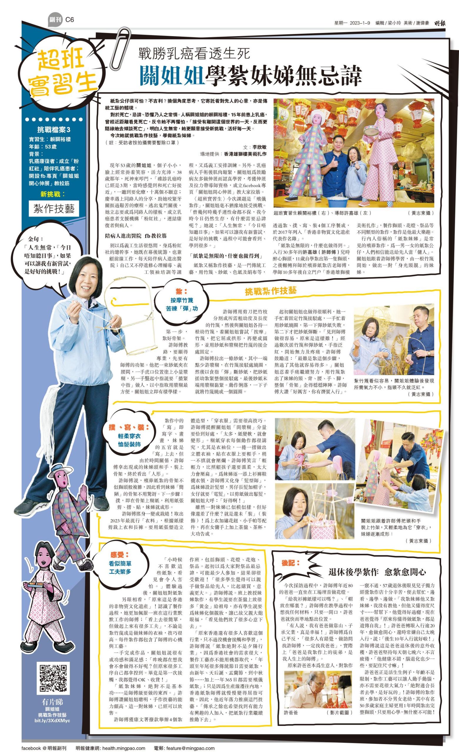 副刊 戰勝乳癌看透生死 關姐姐學紮妹娣無忌諱 發佈於 3 年 前 2023 年 1 月 9 日 By 明報 【明報專訊】紙紮公仔很可怕?不吉利?換個角度思考,它寄託着對先人的心意,亦是傳統工藝的體現。 相關文章: Up Next 鮮榨蔗汁炮製馬蹄糕 啖啖清香 不要錯過 未來城市:精明學藥物知識 「自療」小病痛 長遠有幸福 繼續閱讀 贊助商 猜你喜歡