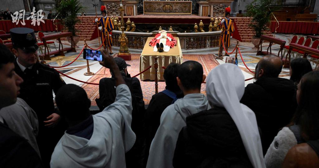 即時國際 本篤十六世遺體公開瞻仰 信眾送別 (20:22) 發佈於 3 年 前 2023 年 1 月 2 日 By 明報 已故榮休教宗本篤十六世的遺體,周一(2日)安放在梵蒂岡聖伯多祿大教堂內供瞻仰,首日數以千計信眾前往送別本篤十六世。意大利總理梅洛尼亦曾到場瞻仰。 周一黎明時分,大批來自各地的信眾在聖伯多祿大教堂外排隊,等候入內瞻仰。隨後信眾魚貫入內,不少人拿起手機拍照。有信眾讚揚本篤十六世是偉大及獨特的教宗。公開瞻仰將舉行3日,周四(5日)教宗方濟各將主持本篤十六世的喪禮。 (法新社) 相關文章:本篤十六世梵蒂岡編輯推介 Up Next 澳洲黃金海岸兩架直升機相撞 釀最少4死9傷 (16:19) 不要錯過 尹錫悅:韓美研聯合計劃演習核武 應對朝鮮核威脅 (19:17) 繼續閱讀 贊助商 猜你喜歡 以哈停火 伯利恆重賀聖誕 短片:梵蒂岡聖誕馬槽揭幕 聖誕樹亮燈 (09:56) 河南新鄉官方主教獲祝聖 英王與教宗公開祈禱 500年來首次 (21:30) 短片:教宗良十四世70歲生日 信徒在梵蒂岡送上祝福 (13:34) 「天主網紅」封聖 教宗:鼓勵年輕人勿浪費生命