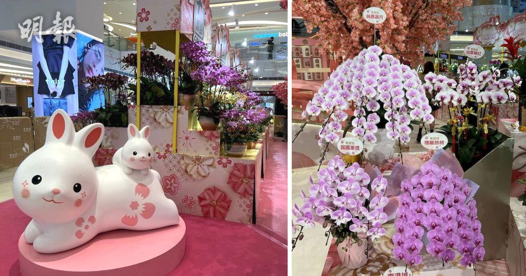 買年花迎兔年。將軍澳東港城明日(6日)起至年三十晚(21日)舉行室內年宵花市,場內蒐羅逾百款蘭花及年花,當中包括5款本地培植的全新蘭花,分別由香港「蘭花大王」楊小龍及兒子楊尹俊培植。5款全新蘭花各有特色,大部分以桃紅胭脂色作主調,再配合雪白色,蘭花猶如化身一堆小白兔,甚為應節。現場亦增設新春主題裝置,日式櫻花園林配上和風造型的開運玉兔供市民打卡。若想親身體驗花藝,活動亦提供和風花藝工作坊及花藝DIY專區。