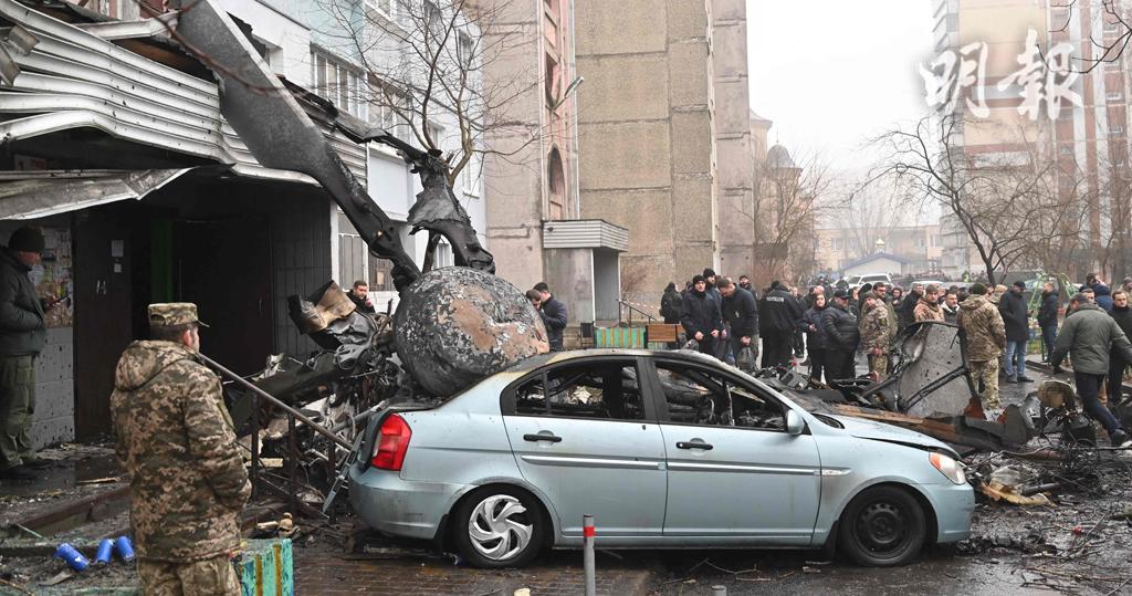 烏克蘭一架直升機周三(18日)早上在首都基輔附近墜毁,當局一度表示造成至少18人死亡,包括內政部長在內的一些內政部高官,以及兒童,其後下調死亡人數為14人。1月19日最新報道:烏內政部長墜機亡 波及地面託兒所