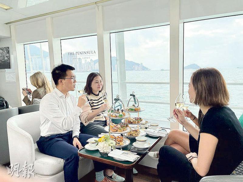 【明報專訊】半島酒店大堂下午茶,你也許試得多,但若把這個傳統英式下午茶移至維港海面,在裝潢精緻的船艙內享受英式紅茶,同時品嘗塗滿香滑clotted cream的英式鬆餅,還有現場音樂表演伴奏助興,如此度過這樣的一個悠然午後,你又試過未?