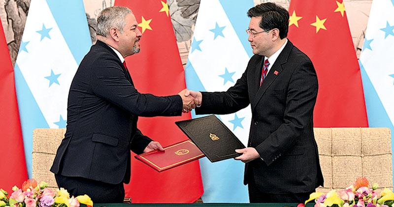 國務委員兼外長秦剛昨早在北京與洪都拉斯外長雷依納(Eduardo Enrique Reina),簽署兩國建立外交關係的聯合公報。自簽署日起,相互承認並建立大使級外交關係。洪都拉斯承認世界上只有一個中國,中華人民共和國政府是代表全中國的唯一合法政府,台灣是中國領土不可分割的一部分。即日斷絕同台灣的外交關係,並承諾不再同台灣發生任何官方關係,「不進行任何官方往來」。