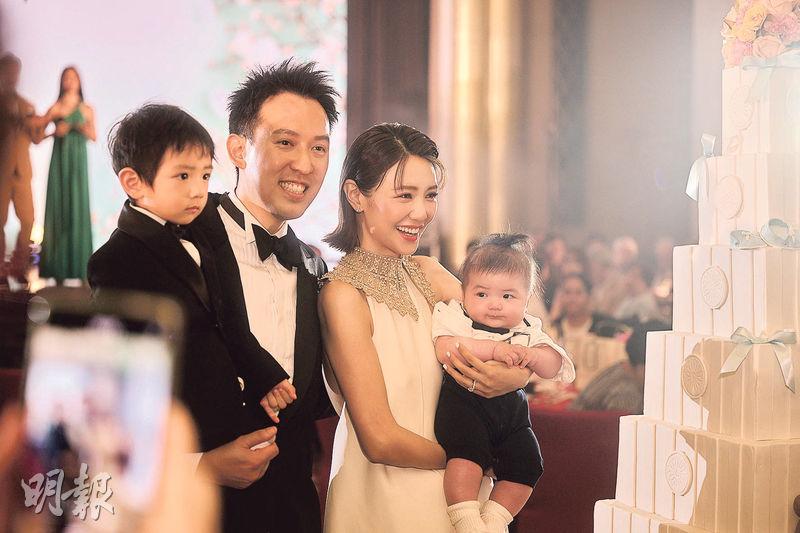 【明報專訊】倪晨曦(Elva)跟從事金融業的Vincent於2020年在夏威夷舉行婚禮,因疫情問題,在港婚宴一再延遲,相隔3年,周日(26日)補擺喜酒,廣邀好友分享喜悅。兩人的婚宴變一家四口,Elva拖住大仔Virgil進場,她跟Vincent跳舞,囝囝跳埋一份,贏得全場掌聲。當晚出席賓客包括文詠珊、湯洛雯、蔡穎恩、沈卓盈、湯怡、陳爽與黃婉曼等。