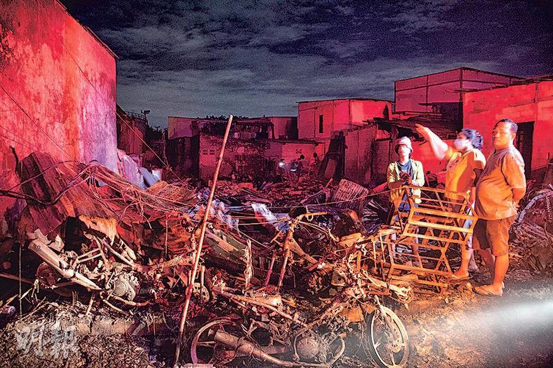 【明報專訊】印尼國家石油公司(Pertamina)位於首都雅加達北區的油庫上周五(3日)晚發生爆炸,火勢一度蔓延至周邊200米範圍內人口密集地區,包括數十間房屋和一些汽車(圖),觸發恐慌。事件造成17死60傷3失蹤,死者包括兩名兒童,1085名居民被疏散。雅加達代理首長赫魯表示,傷者多數遭燒傷,政府將承擔醫療費用。國家警察局昨公布初步調查結果,指事發時工作人員正向燃料庫運送燃油,灌裝過程中「出現技術問題」,導致容器內壓力過大,隨後起火。印尼國家石油公司官網顯示,涉事油庫1974年運作,主要服務大雅加達地區。當地傳媒指,同一油庫2009年和2014年亦曾發生火災。