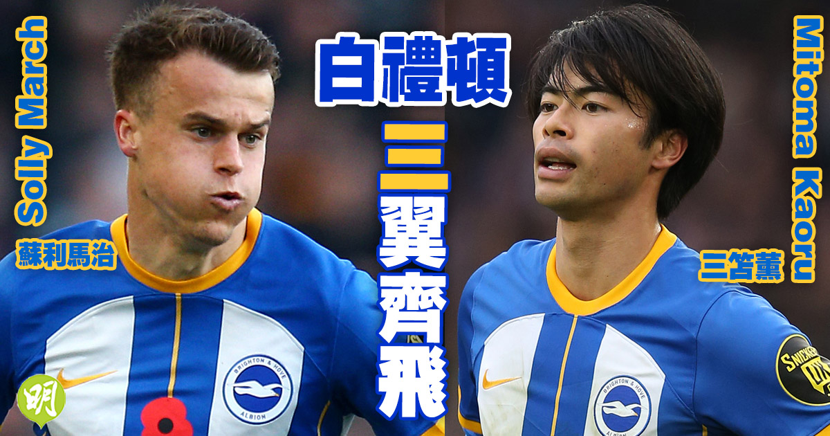白禮頓是今季英超黑馬,當中一對翼鋒三笘薰與蘇利馬治(Solly March)大熟大勇,這支綽號「海鷗」的英國南部海濱城鎮球會能否翱翔下季歐洲賽,踏入3月的「三」翼齊飛將更舉足輕重。