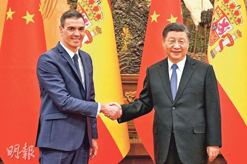【明報專訊】國家主席習近平密集展開主場外交,昨一天內在北京人民大會堂接連會見了到訪的西班牙首相桑切斯、馬來西亞首相安華、新加坡總理李顯龍。桑切斯會後表示,他向習近平表達西班牙對俄羅斯非法入侵烏克蘭的關切,鼓勵習與烏總統澤連斯基會晤,直接了解烏方和平方案,以協助終止俄羅斯入侵行動。新華社稱習近平強調應摒棄冷戰思維和陣營對抗,放棄極限制裁施壓。