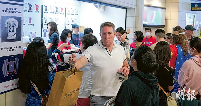 大會官方商店Kukri今年在場內設兩個攤位賣球衣及鎖匙扣等紀念品,職員Rachel昨接受本報訪問稱,每件球衣平均售500多元,去年3日賽事共售出5800多件,生意額約220萬元,今年則於前日單日已賣出3800多件,生意額約130萬元,形容是「爆晒target」;昨日周六人流亦明顯較周五多,半日生意已有50萬元,有信心3日賽事最終生意可達450萬元,較去年翻倍。Rachel認為今年銷情主要受海外遊客回升帶動,他們大多出手闊綽,前日便有遊客稱要買手信「派街坊」,一口氣買下30多件球衣。