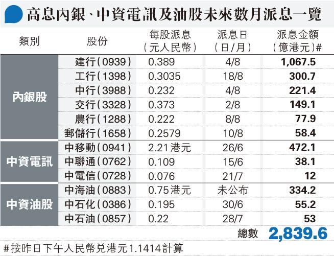 【明報專訊】每年只派一次末期息的內銀股在上月公布業績,單計六大內銀H股,將在8月初至中旬派息近1900億港元,連同高息內地電訊和石油股合計派息2800多億元。銀行體系總結餘即將跌穿700億元,星展香港財資市場部環球市場策略師李若凡稱, 倘出現企業派息等對港元的需求,總結餘縮減下對推高拆息有相當大影響,加上6月底將有半年結資金需求,預期1個月拆息或在6月回升至4厘以上水平。
