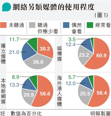 不過,在轉變中的政治和社會環境中,有多少人會關注各網絡媒體?這些新舊網媒的讀者有什麼特徵?中文大學新聞與傳播學院剛在3月完成一個調查研究,訪問了1015名香港市民,部分研究結果就跟轉變中的網絡另類媒體相關。