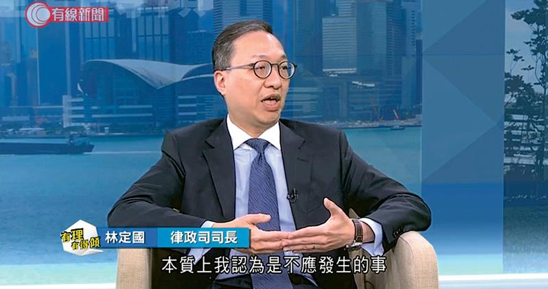 【明報專訊】律政司期望今年上半年通過修訂《法律執業者條例》,規範海外律師來港處理涉及國家安全的案件。律政司長林定國近日接連受訪,進一步解釋修例內容,昨日他在有線電視節目《有理有得傾》首次明言,海外律師參與國安案件「本質上不應該發生」。問到是否已假定不會批准海外律師來港,林定國重申「我們認為不適合」,但非絕對禁止,強調有例外情况,但申請人要提供證明說服特首。