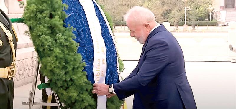 盧拉昨日中午前往天安門廣場,向人民英雄紀念碑敬獻花圈。紀念碑處於北京中軸線,正式落成於新中國成立前一天,有人民是歷史創造者之意。《聯合報》稱,這是盧拉對中國表示友好的一個舉動。官媒亦即時發布推送,視頻中盧拉肅穆跟隨兩名抬着花圈的士兵步上台階,並觸摸花圈上寫有中葡雙語紀念文字的白色布條。