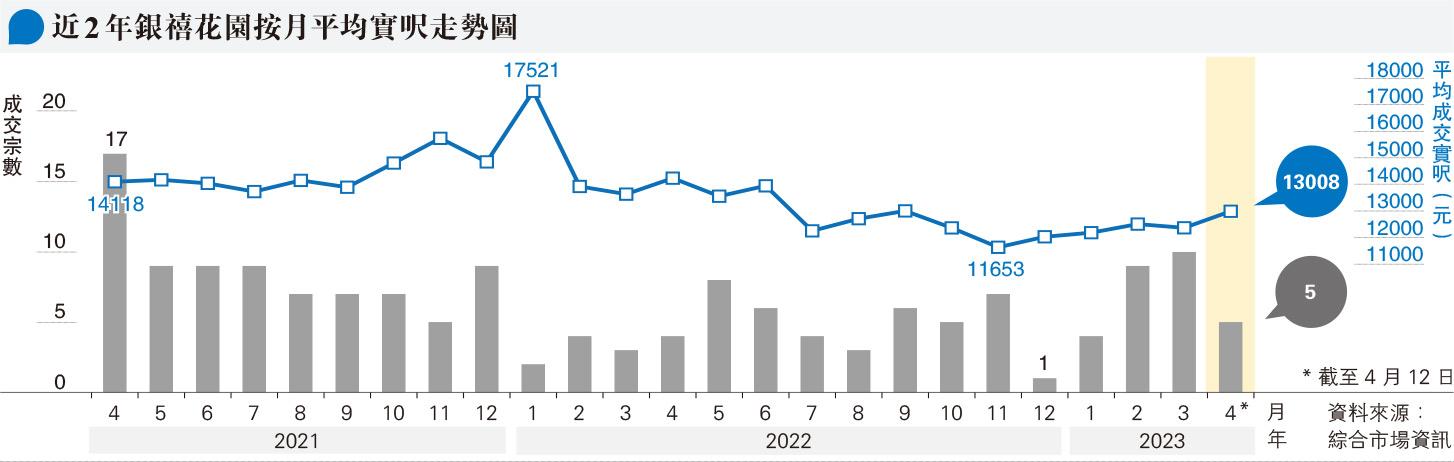 【明報專訊】樓價連升數月,部分屋苑樓價已累錄超過一成升幅,其中樓齡約38年的火炭銀禧花園,去年第四季平均呎價一度失守1.2萬元後,本月首12日均呎已回升至1.3萬元水平,為屋苑超過半年來新高。