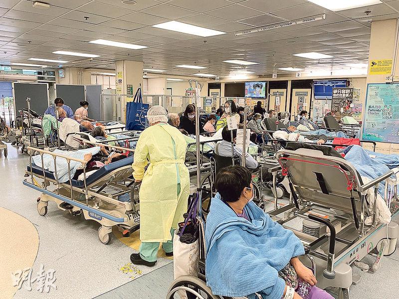 急症室擺放至少20張病牀,有院舍職員陪同一名輕微中風老翁求診,昨早8時許已在輪候區,其間老翁在病牀上失禁,院舍職員要求醫護人員協助換片,對方稱「要睇睇有無位,無位都幫你唔到」,最終相隔逾半小時亦未有人能協助換片。