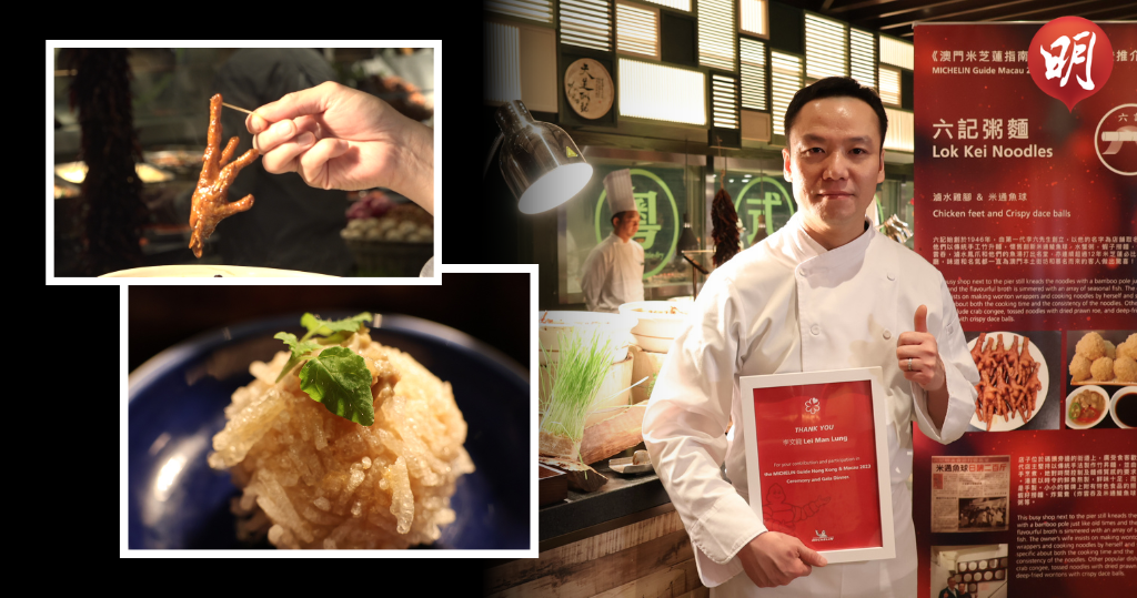 連續12年獲米芝蓮「必比登推介」的澳門六記粥麵,第三代傳承人李文龍周三(26日)在《香港澳門米芝蓮指南2023》活動上接受明報電子平台組訪問,大談招牌鹵水雞腳及米通鯪魚球的精要所在。原來兩道菜式的煮法分別承傳自李文龍的爺爺和爸爸,現今由他接棒烹煮,盛載了三代人的味道。
