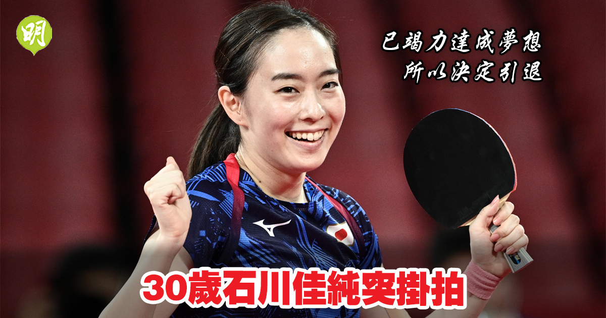 日本女乒主力石川佳純今日(1日)宣布結束16年國家隊生涯,以30歲之齡掛拍。她在社交網撰文指,「感到自己已竭力達成夢想,所以決定引退」。
