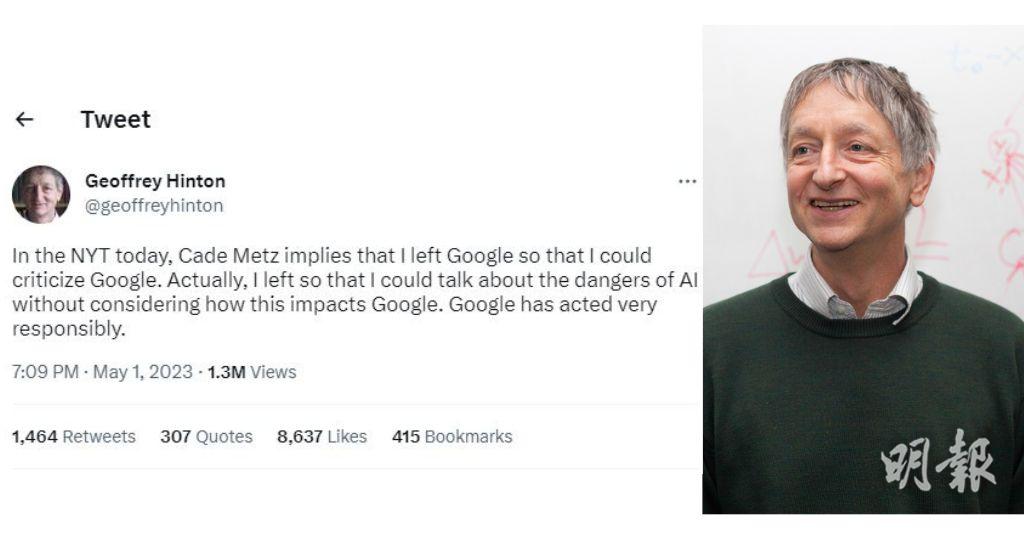 75歲的Hinton在Google兼職工作10年,主力協助開發AI的工作。他表示,離開Google是希望可以自由談論AI的風險,毋須顧忌言論對Google構成影響,但強調Google已採取非常負責任的行動。
