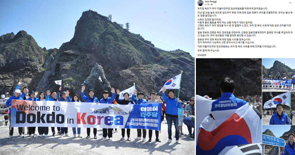 韓國最大在野黨共同民主黨議員田溶冀日前登獨島,並於周三在社交網站上傳相關圖片。日本外務省和駐韓使館分別向韓國駐日使館和外交部提出抗議。外務省亞洲大洋洲局長船越健裕向韓國駐日大使館次席公使金容吉重申,「不論是依照歷史事實還是國際法,竹島很清楚就是日本固有領土」,也表達「完全無法接受、極其遺憾」的強烈抗議之意。