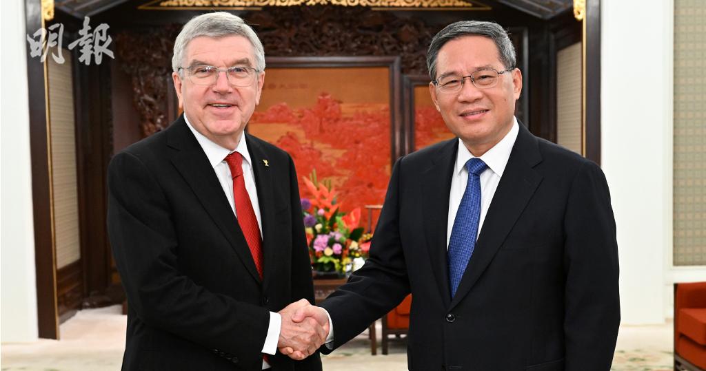 國務院總理李強上周六(6日)在北京會見國際奧委會(IOC)主席巴赫(Thomas Bach)。二人均反對體育政治化。