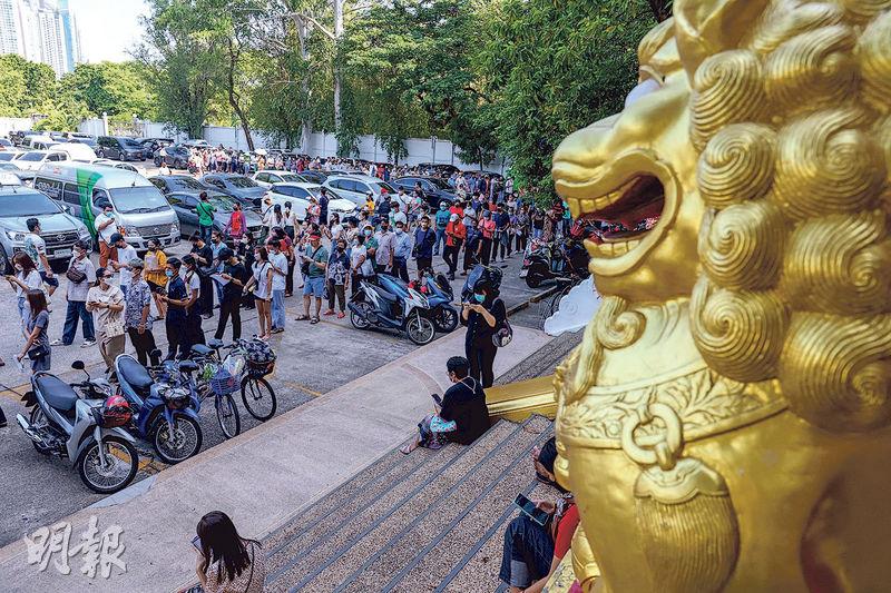 國際 泰大選提前投票 選民高溫下排長龍 發佈於 2 年 前 2023 年 5 月 8 日 By 明報 【明報專訊】泰國下周日(14日)大選,昨天(7日)是提前投票日,不少選民在烈日下排隊進入設於各地寺廟、購物中心和學校的投票站提前投票。根據選委會統計,5228萬餘選民中,有235萬多人登記提前投票。 上周五公布的兩項民調顯示,在野「前進黨」首相候選人皮塔的支持率超越最大在野黨「為泰黨」首相候選人兼前首相他信女兒佩通坦(Paetongtarn Shinawatra),成為下任首相熱門人選,而現任首相巴育民調持續落後。 (路透社) 相關文章:巴育(Prayuth Chan-ocha)泰國大選 Up Next 紅場今「勝利日」閱兵 官員稱緊張氣氛空前 不要錯過 查理斯三世濫捕效忠爭議下加冕 延續亡母誓言 稱「不是受人服侍乃是要服侍人」 繼續閱讀 贊助商 猜你喜歡 巴育宣布退出政壇 看守至泰誕新政府 彭博:銀娛美高梅研泰國開賭場 泰國大選|皮塔矢言當「所有人的首相」改革王權法律 擁高學歷企業家曾娶女星【多圖】 (16:12) 泰國大選|點票完成 前進黨成最大黨 黨魁皮塔宣布勝選自封「下任首相」 (15:03) 泰國大選兩大反對黨議席領先 料商討組聯合政府 (09:45) 泰國大選|首相之戰「三分天下」 挑戰巴育相位有難度 (12:00)