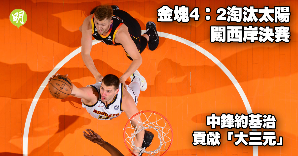 西岸一哥丹佛金塊今日(12日)在NBA季後賽,趁着鳳凰城太陽兩大主力高掛免戰牌,頭兩節逾六成命中率射入81分,一度將領先優勢擴至30分。金塊最終在約基治貢獻「大三元」下,作客以125:100擊敗太陽,場數4:2過關,率先殺入西岸決賽。至於波士頓塞爾特人憑塔圖在決勝節獨得16分,作客以95:86反勝費城76人,場數追成3:3,兩隊將於下周日(14日)「搶7」爭入東岸決賽。