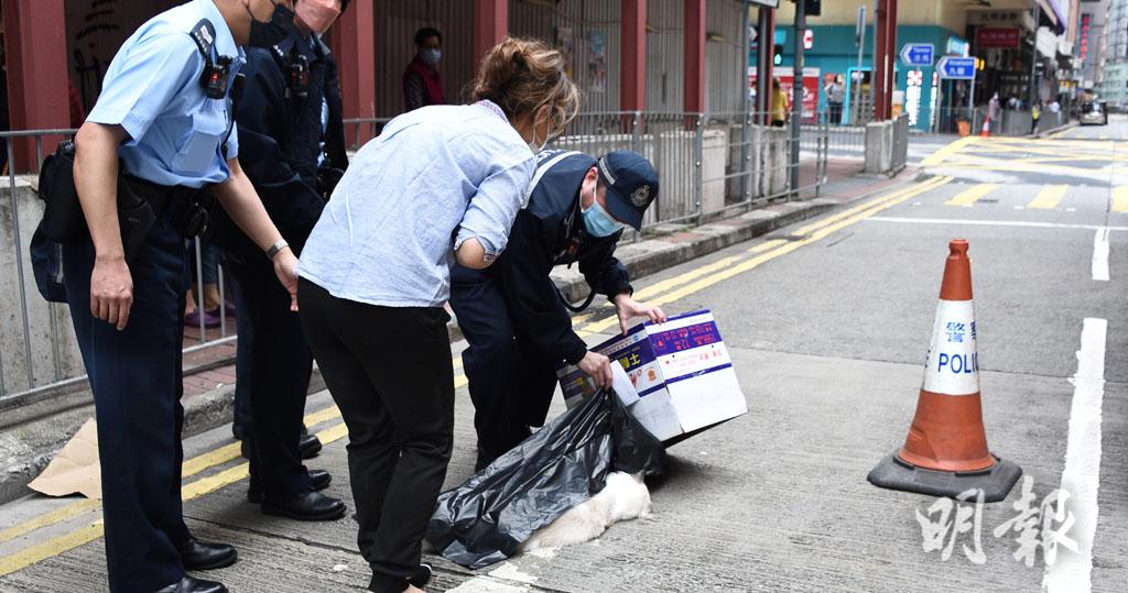 今日(13日)上午9時53分,灣仔軒尼詩道187號有白色貓隻從高處墮下,擊中駛經的平治房車,車頭冚凹陷損毁,貓隻反彈墮地,後證實當場死亡。警方接報到場,用紙箱及黑色膠袋遮蓋貓屍。女貓主事後到場了解,並與男司機交換聯絡方法,承諾賠償。警方將案件列作虐待動物,拘捕一名女子。