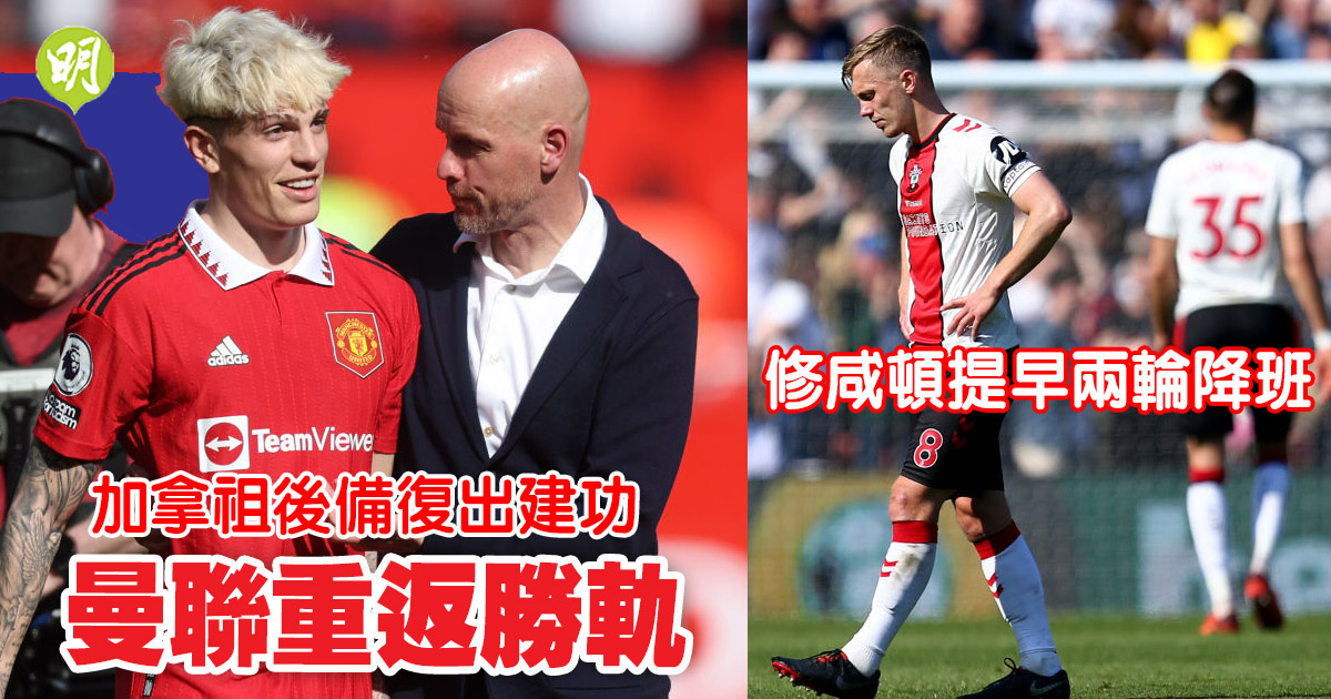 曼聯昨晚(13日)英超憑安東尼馬迪爾及傷癒復出的阿歷真度加拿祖各建一功,在主場以2:0擊敗狼隊,結束兩連敗重返勝軌,「紅魔」賽後35戰66分,與同日失分排第3的紐卡素同分,續保前四席位。另邊廂,熱刺作客1:2不敵阿士東維拉後,正式宣告前四夢碎及無緣下屆歐聯席位。