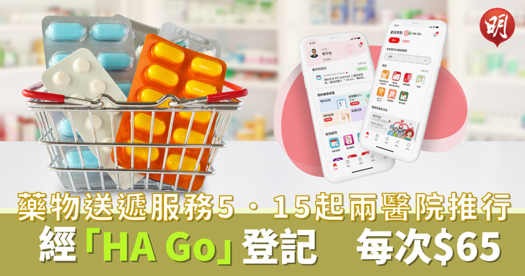 瑪麗醫院及將軍澳醫院專科門診本月15日起,將率先推出「藥物送遞服務」,病人就診後,可通過醫管局流動應用程式「HA Go」,安排藥物送遞至家中或指定地址,毋須返回或留在醫院或診所藥劑部等候。