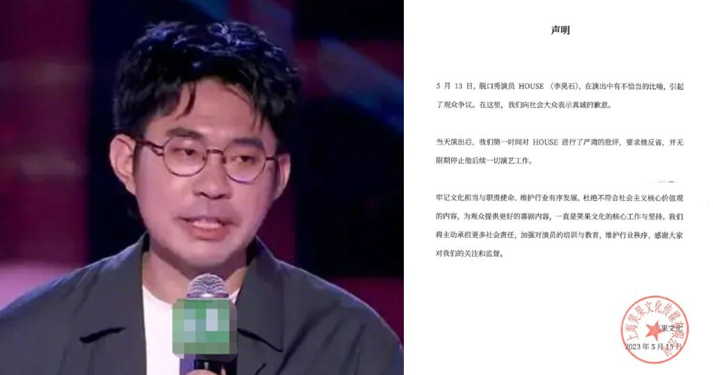 「笑果文化」發聲明承認HOUSE在演出中有不恰當的比喻,引起爭議,公司向社會大眾表達真誠歉意,亦第一時間對HOUSE進行嚴肅批評,要求他反省。