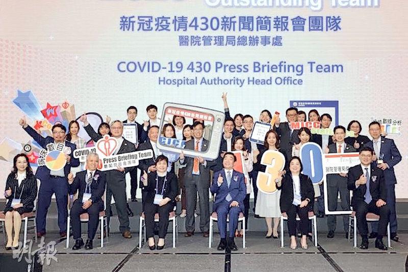 【明報專訊】回望過去3年新冠疫情,除咗口罩、快測棒等醫療物資外,幾乎每日下晝4點半舉行嘅疫情記者會都令Emily印象深刻。醫管局噚日頒發傑出員工及團隊獎,其中醫管局總辦事處嘅「新冠疫情430新聞簡報會團隊」就獲得呢個殊榮。