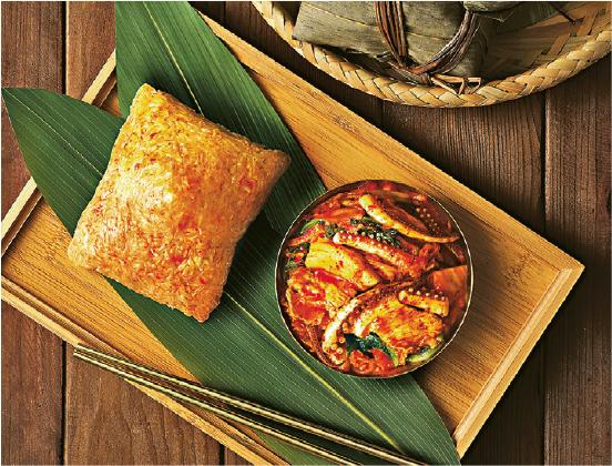 去年奇華以韓國泡菜(辛奇)入糉後,今年延續韓風,推出韓式八爪魚泡菜糉。糯米中夾雜着爽脆的辛奇、煙韌的八爪魚,再加上韓式辣醬調味,為傳統糉子增添香辣滋味,亦中和了糯米的膩滯感,絕對能滿足哈韓一族。