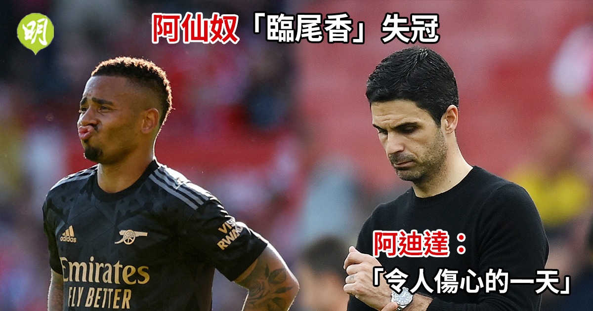阿仙奴今季英超初及中段成績超卓,一度長期盤據榜首達248天,兩個月前也一度拋離曼城8分,卻因「臨尾香」,上月先後連續打和利物浦、韋斯咸和修咸頓而痛失6分,接着在冠軍前哨戰作客以1:4大敗予曼城,令相隔19年再度封王幾近成泡影,今晨(21日)繼上仗主場負白禮頓後,再作客向諾定咸森林屈膝稱臣,終將錦標拱手讓予連贏11場的曼城。